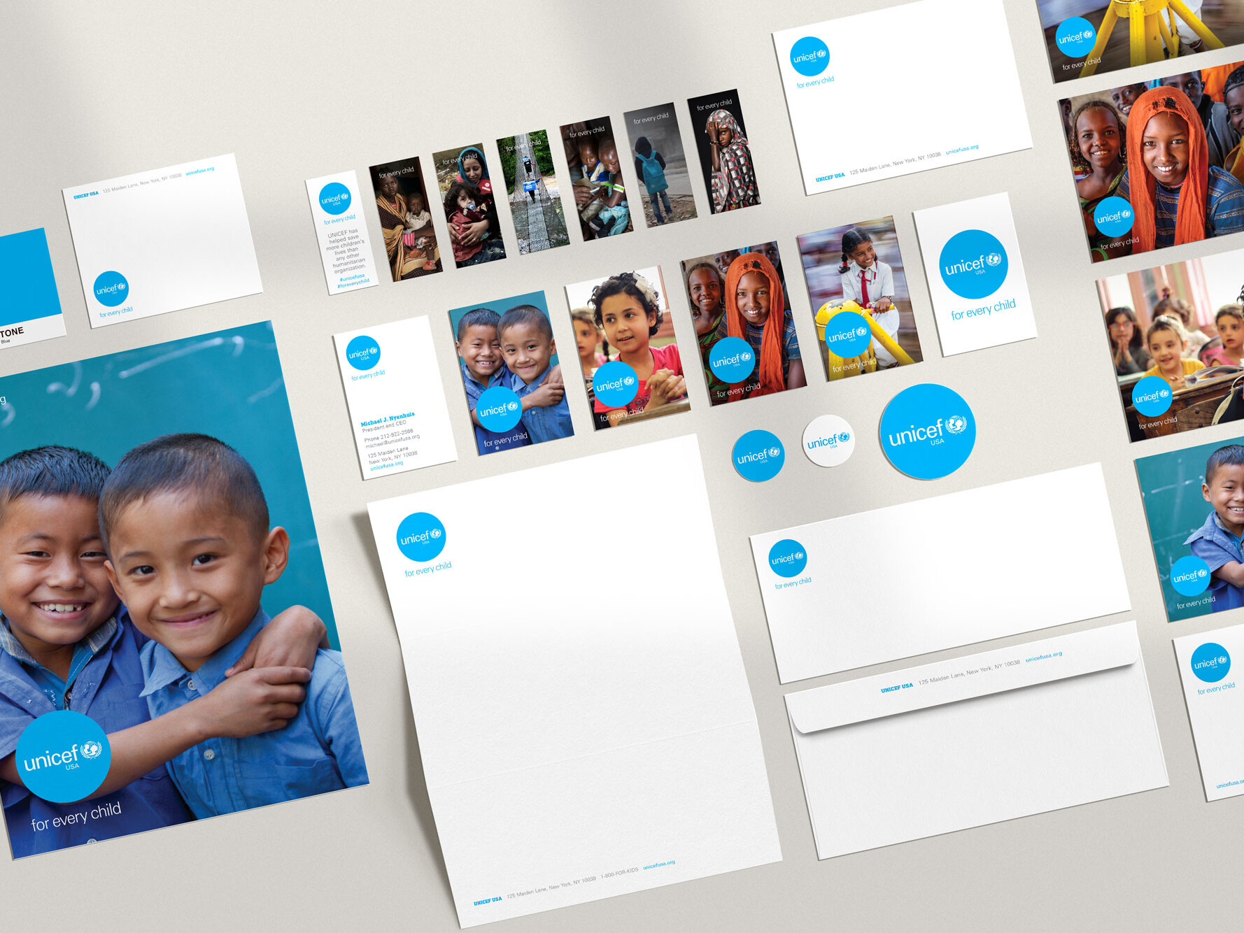 Led the creative direction and design system for UNICEF USA’s 2017 brand refresh, guiding teams through rollout and implementation across multiple channels to support clarity, consistency, and long-term use.